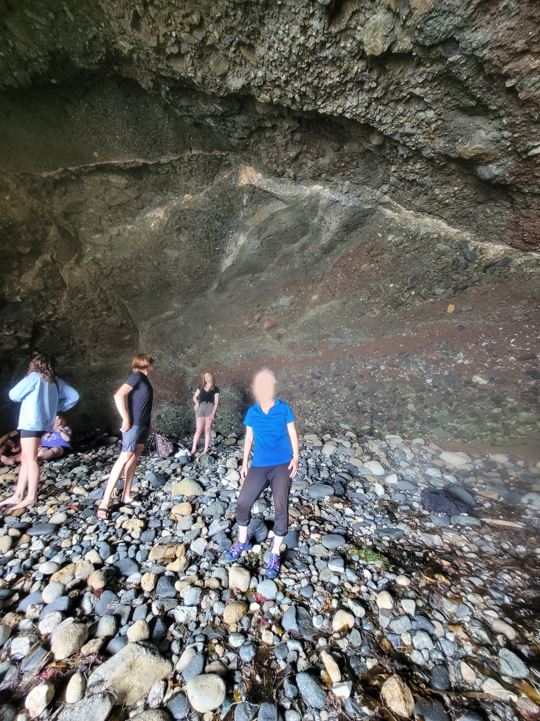 My mom put on some waterproof sandals for hiking, which turned out to be a rather poor decision. Although the trail is mostly flat, it’s also really rocky. My mom ended up falling and sacrificing some skin to the hiking Gods. I asked her if she wanted to turn around but she said she was committed to entering the cave.