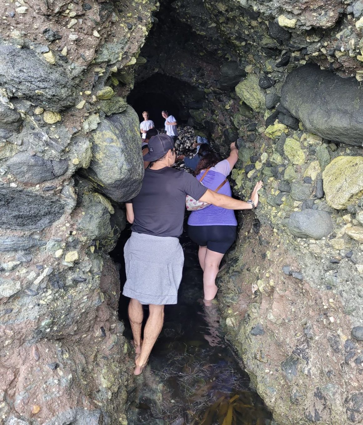 Initially, the water level didn’t look that deep to my Mom. So she was like in Chinese – “I’ve made it this far. I’m gonna try and go for it”. That was the first time I saw my mom step out of her comfort zone with ocean water. Legit like 4 steps in, the water was at her knee cap. She bailed quickly and climbed back out. If you’re at least 5′ 5″, the water level won’t be that deep to you. If you’re 5′ 2″ or 3″ like my Mom and can’t traverse the wall like the people you see in the picture, the water level can be deep for you.