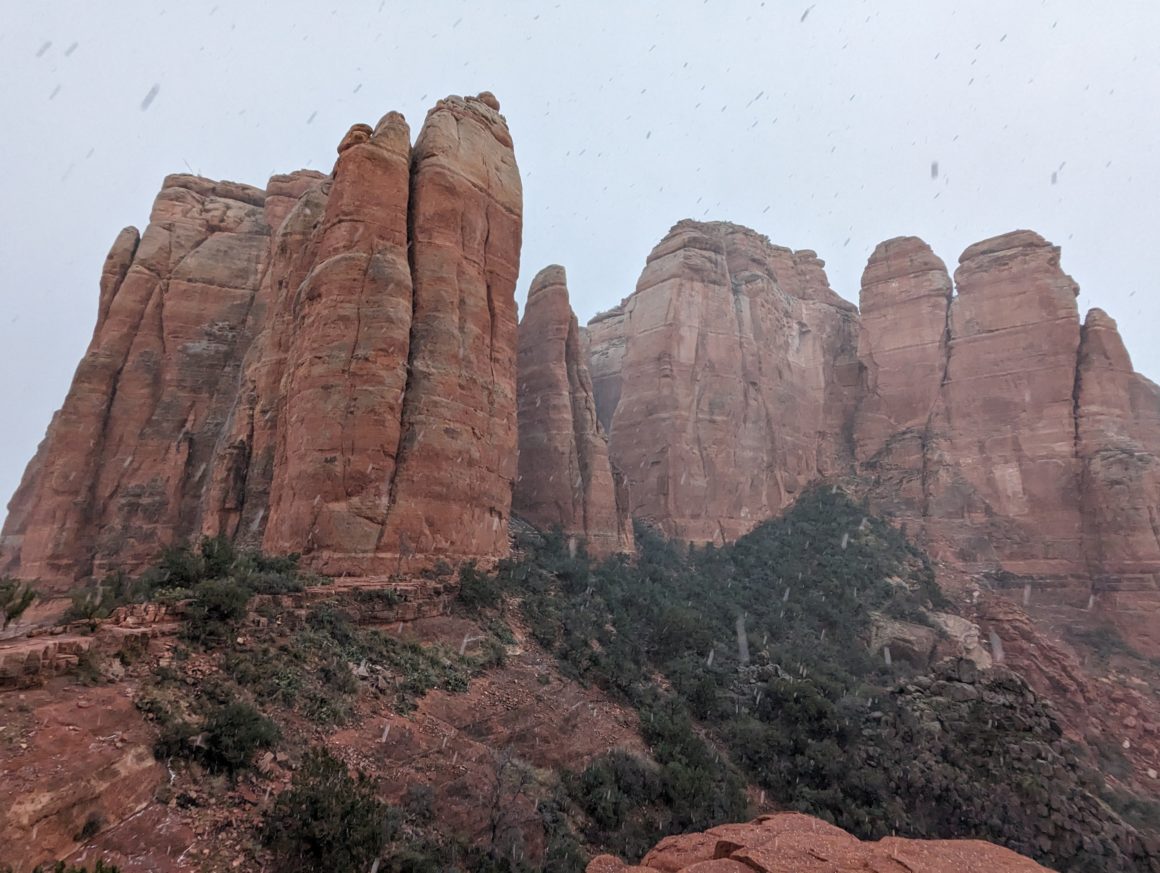 We were able to squeeze two hikes in because both were a bit shorter in length. We did Devil’s Bridge and Cathedral Rock. I think both hikes are very doable and can be done in one day. I wouldn’t call myself and my friend experienced hikers but we do work out to keep ourselves in shape. So we weren’t dying after both hikes. Cathedral Rock is definitely the harder hike of the two. It’s almost 750ft of elevation game in less than a mile. It’s pretty steep so it’s best to hike it with hiking boots…You can do Devil’s Bridge with normal sneakers…assuming you hike it when it’s dryer and not snowing…