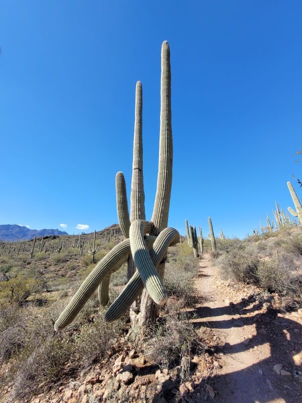 As a small random fact, those cacti are Saguaros. They are only native to Arizona. Some can grow up to 25 arms. Imagine if you just accidentally mountain biked yourself into a 25 arm cactus. Oof.