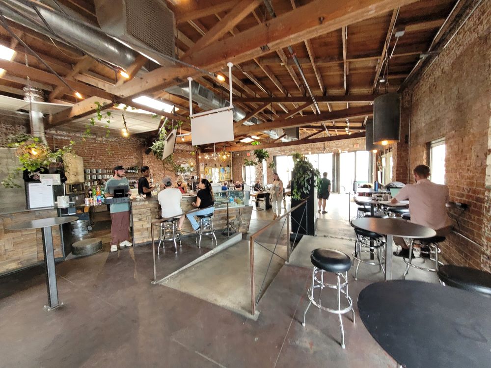 Both locations have an industrial theme to it. They both have big wooden exposed ceilings. Most of their tables are made of metal. I just realized this but both locations have a large wooden table in the center of their very open floor plan. The large wooden table adds a nice touch to the industrial style interior. Both locations offer comfortable couches to sit on if you don’t want to sit at the tables.