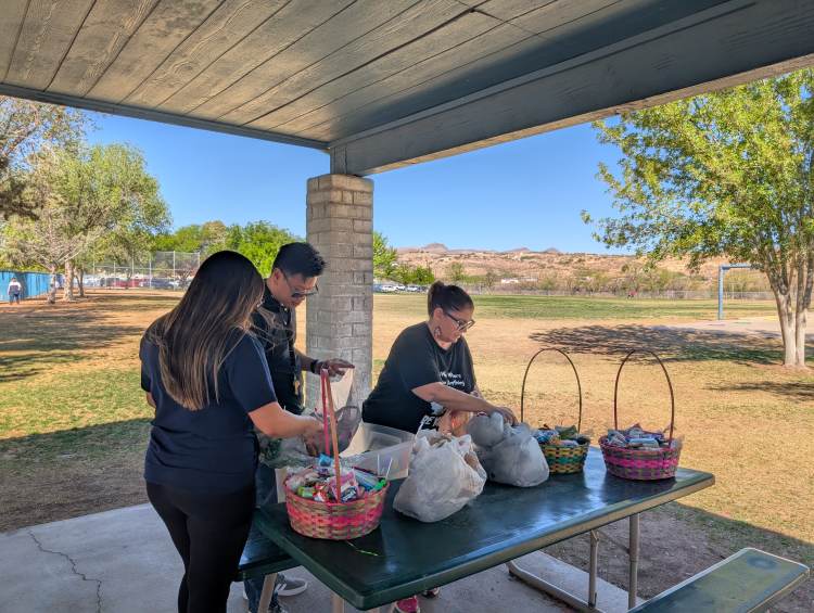 Once we finished setting up, we went to pick up the kids. We had all of them line up on the basketball court. I was given the honorary role of counting down the kids before they could rush the fields. I remember seeing them all excited and getting antsy. The second I got the thumbs-up from the teachers to start the countdown, the kids took off. They didn’t even wait for it. So I just yelled, “GO GO GO!” as they swarmed the field like a mini stampede. It was really fun watching them run around looking for Easter eggs.